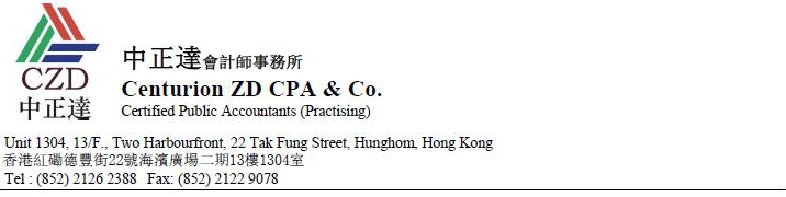 23.3   Consent report of Centurion ZD CPA & Co.
