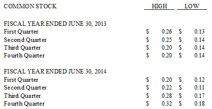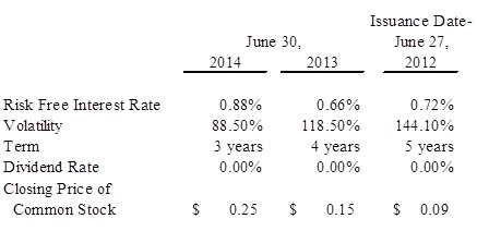 During the fiscal year ended June 30, 2014 and 2013, the Company did not incur any stock compensation expense.