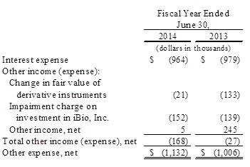 The components of interest expense for the fiscal years ended June 30, 2014 and 2013 are presented below: