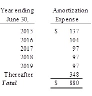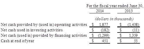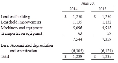 Depreciation and amortization expense was $253 and $289 for the fiscal years ended June 30, 2014 and 2013, respectively.  In the fiscal year ended June 30, 2014, the Company disposed of fully depreciated property and equipment with an original cost of $72 as with a trade in value of $4, recognizing a gain on disposition.  For the fiscal year ended June 30, 2013, the Company disposed of property and equipment with an original cost of $198 for net proceeds of $19, recognizing a loss on disposition of approximately $6.