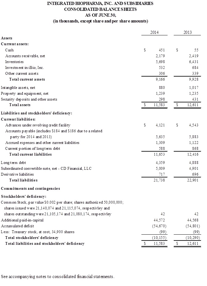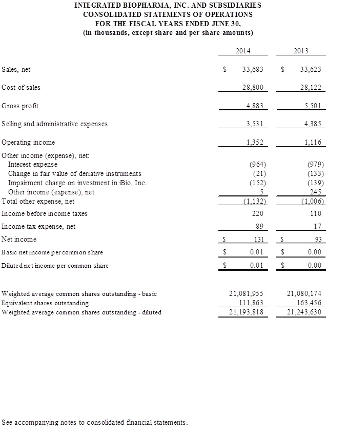 INTEGRATED BIOPHARMA, INC. AND SUBSIDIARIES