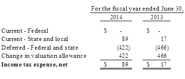 There were no significant uncertain tax positions taken, or expected to be taken, in a tax return that would be determined to be an unrecognized tax benefit taken or expected to be taken in a tax return that should have been recorded on the Company’s consolidated financial statements for the year ended June 30, 2014.  Additionally, there were no interest or penalties outstanding as of or for each of the fiscal years ended June 30, 2014 and 2013.