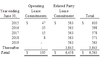 Total rent expense, including real estate taxes and maintenance charges, was approximately $1.0 million and $985 for the fiscal years ended June 30, 2014 and 2013, respectively.