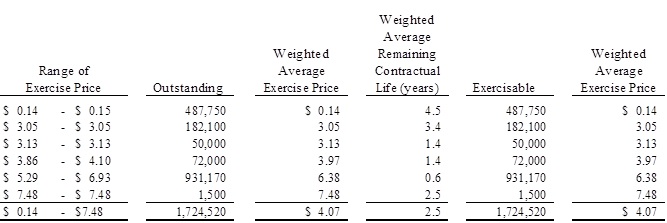 The following table summarizes the range of exercise prices and weighted-average exercise prices for stock options outstanding and exercisable as of June 30, 2014 under the Company’s stock option plans: