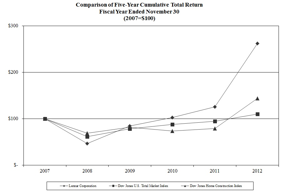 The following financial statements from Lennar Corporation Annual Report on Form 10-K for the year ended November 30, 2012, filed on January 29, 2013, formatted in XBRL (Extensible Business Reporting Language); (i) Consolidated Balance Sheets, (ii) Consolidated Statements of Operations, (iii) Consolidated Statements of Cash Flows and (iv) the Notes to Consolidated Financial Statements (1).