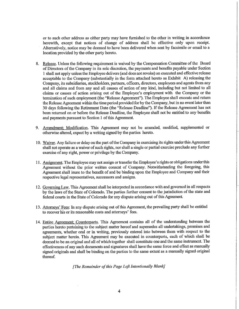 EX-10.20 2 jamesvenezianosignedreti.htm EXHIBIT 10.20 jamesvenezianosignedreti