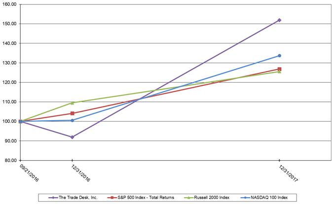 The information in this exhibit is furnished and deemed not filed with the Securities and Exchange Commission for purposes of section 18 of the Securities Exchange Act of 1934, as amended, or the Exchange Act, and is not to be incorporated by reference into any filing of The Trade Desk, Inc. under the Securities Act of 1933, as amended, of the Securities Act, or the Exchange Act, whether made before or after the date hereof, regardless of any general incorporation language in such filing.
