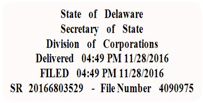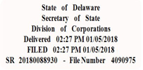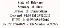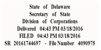SECOND: The address, including street, number, city and county, of the registered office of the Corporation in the State of Delaware is 1209 Orange Street, Wilmington, County of New Castle, Delaware 19801; and the name of the Registered Agent of the Corporation at such address is The Corporation Trust Company.