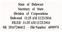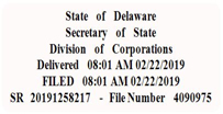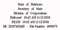 This Certificate of Amendment shall be effective on October 3, 2019 at 5:00 P.M. Eastern Time.